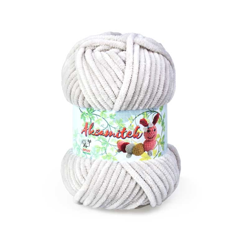 Aksamitek to włóczka marki Opus Natura. Bardzo miła w dotyku. Idealna na maskotki, kocyki i wszelkie wyroby dziecięce.