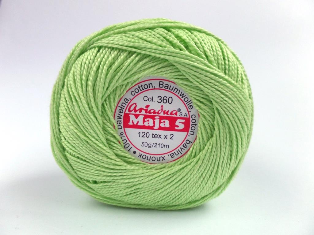 Bawełniany kordonek polskiego producenta - Ariadna. Jest wykonany z długowłóknistej bawełny, opalanej i dwukrotnie merceryzowanej. Nadaje to kordonkowi Maja niesamowity perłowy połysk oraz miękkość, która sprawia, że jest on bardzo przyjemny w dotyku. Nadaje się do wszelkich robótek dziewiarskich.