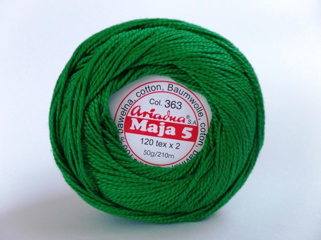 Bawełniany kordonek polskiego producenta - Ariadna. Jest wykonany z długowłóknistej bawełny, opalanej i dwukrotnie merceryzowanej. Nadaje to kordonkowi Maja niesamowity perłowy połysk oraz miękkość, która sprawia, że jest on bardzo przyjemny w dotyku. Nadaje się do wszelkich robótek dziewiarskich.