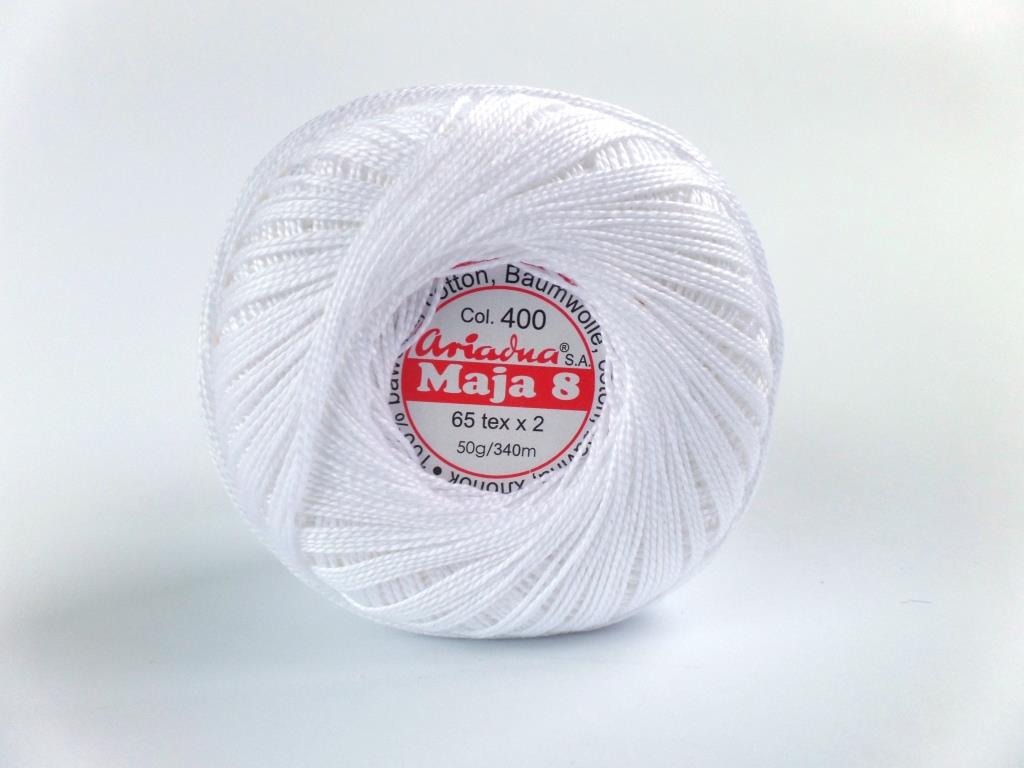 Bawełniany kordonek polskiego producenta - Ariadna. Jest wykonany z długowłóknistej bawełny, opalanej i dwukrotnie merceryzowanej. Nadaje to kordonkowi Maja niesamowity perłowy połysk oraz miękkość, która sprawia, że jest on bardzo przyjemny w dotyku. Nadaje się do wszelkich robótek dziewiarskich.